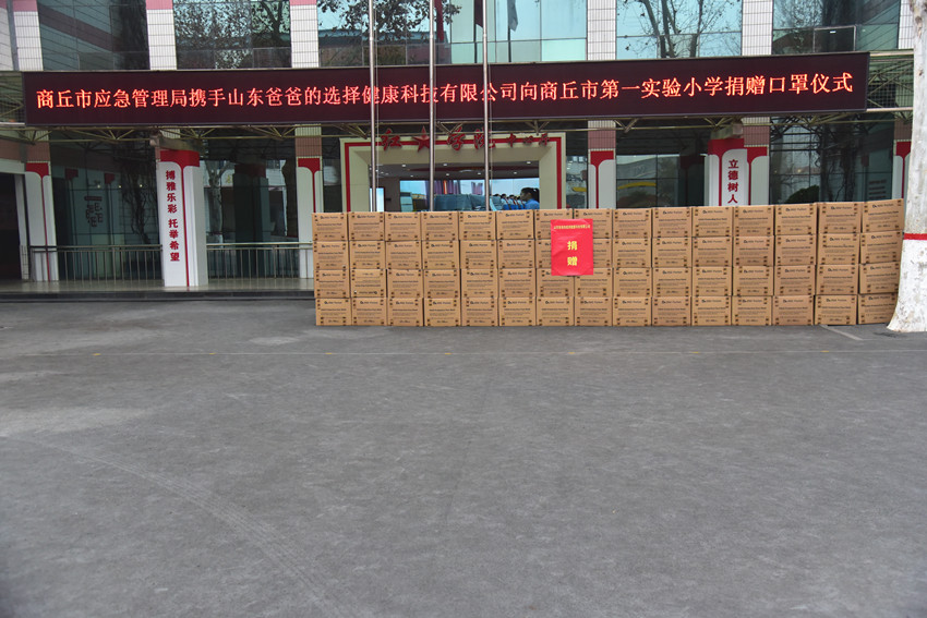 面对新冠肺炎疫情,为了帮助缓解当前学校筹备疫情防控物资压力,商丘市应急管理局携手山东爸爸的选择健康科技有限公司向商丘市第一实验小学捐赠N95口罩6万只,助力学校打赢疫情防控阻击战。商丘市应急管理局党委书记局长李中须、党委委员副局长胡林等班子成员、商丘市第一实验小学校长赫建华及所有领导班子成员参加本次捐赠仪式。