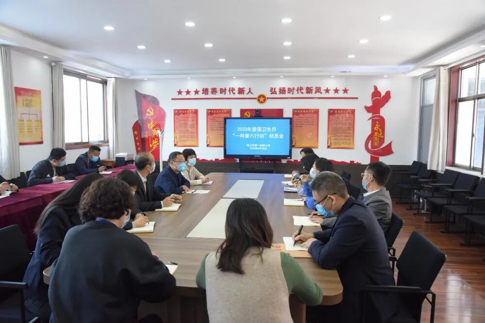 428日,校领导班子召开了以防疫有我 爱卫同行为主题的爱国卫生月一科普六行动动员会。会议商讨制定了爱国卫生月活动方案,明确职责分工,对办公室、教室、图书室、餐厅、公厕等师生较集中的场所提出整改建议,动员大家积极投身到爱卫活动中去,统筹做好校园疫情防控工作,创设整洁卫生的校园环境,做到校园防疫无漏洞,卫生环境无死角。