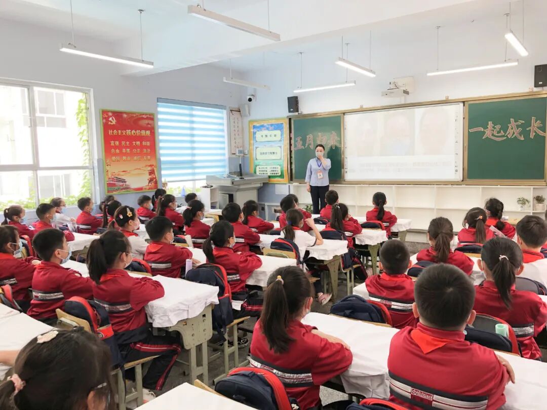 小身板蕴大能量,口罩不遮读书声。新学期以新的方式开展新的学习,学生们同样劲头十足。国学诵读、经典诗词、课本美文、防疫童谣,句句醉心再入耳已是初夏,好学之人仍处少年。大队辅导员张老师通过广播向学生们提出了校内防疫注意事项,寄语新希望,努力获新收。
